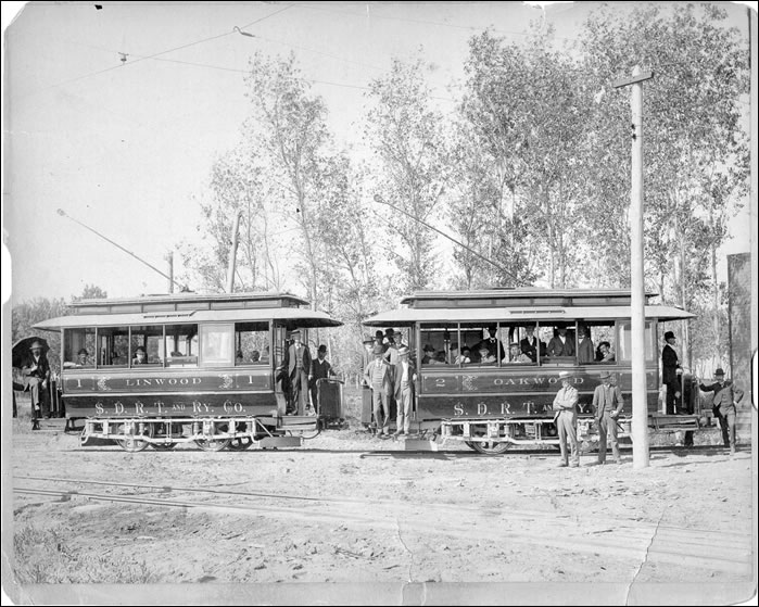 In 1890, the South Dakota Rapid Transit & Railway Company constructed an electric motor line between Sioux Falls and East Sioux Falls. Sioux Falls officials hoped the line would encourage the quarry workers to live in the city and commute out to their jobs, a convenient one-half hour trip each way. Workers rejected this opportunity, opting instead to live near the quarries thereby contributing to the rapid growth of East Sioux Falls. But the motor line did become popular among Sioux Falls residents who traveled to East Sioux Falls to participate in its colorful lifestyle, social events and to visit the “Park” where the beauty of the hills and wooded area along the Big Sioux River was displayed. The motor line ceased operations in 1897.
