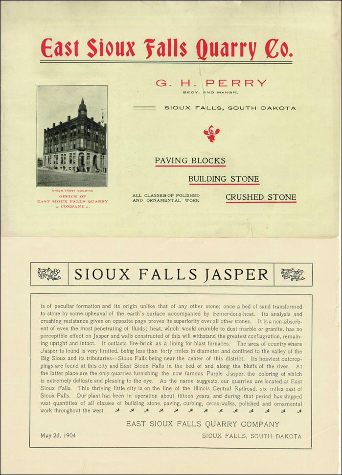 The decline of East Sioux Falls occurred just as suddenly as its birth. The depression of 1893 and a shift away from stone as a building and paving material decreased quartzite production and forced workers to move elsewhere for jobs. The quarry industry struggled to survive and eventually the Sioux Falls Granite Company was forced into bankruptcy. There were several attempts to revive the once thriving quarries, including a new company named the East Sioux Falls Quarry Company managed by G. H. Perry.