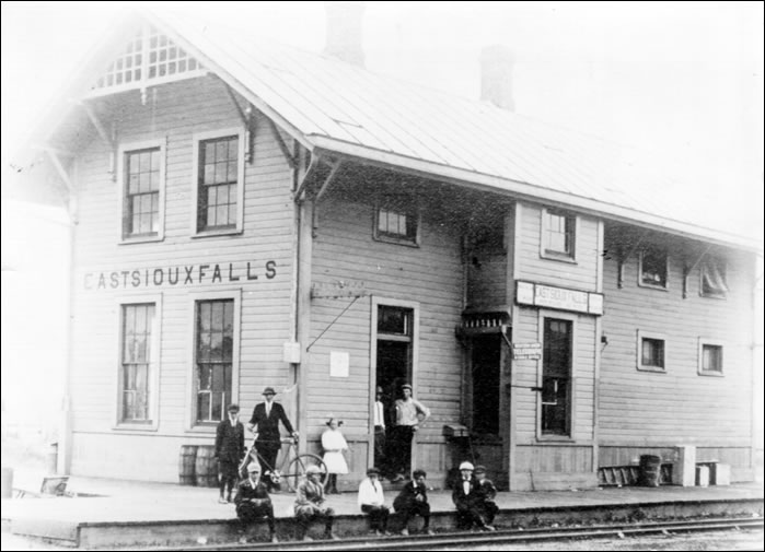 The railroad depot was built by the Illinois Central in 1888. The station was named East Sioux Falls, relegating the town of Ives to the historical records. Although East Sioux Falls was born from the stone quarries, it grew to boomtown status because of the railroad.