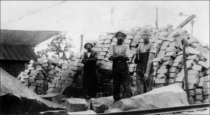 Paving block and building stone could now be transported by rail to major metropolitan markets. The quarried stone was moved by tram cars to cutting areas called “motions”. Each stone cutter had his individual motion. The tram cars also supplied rock to the crusher and loading points on the main line track.