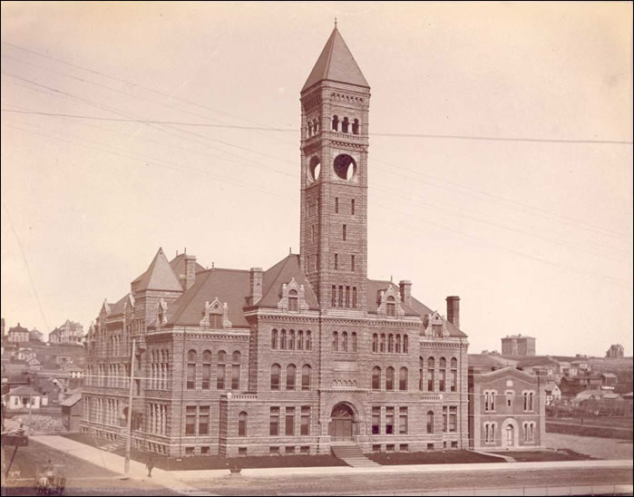 One of the most recognizable structures constructed from the stone at the East Sioux Falls quarries is the Minnehaha County Courthouse, or Old Courthouse Museum as it is now known. The building is at the corner of 6th Street and Main Avenue in downtown Sioux Falls and was completed in December of 1889 by the Sioux Falls Granite Company at a cost of $80,000. The workmanship of the stone craftsmen is evident in the building and its landmark clock tower. The structure has been restored by Minnehaha County and is part of the Siouxland Heritage Museum system.