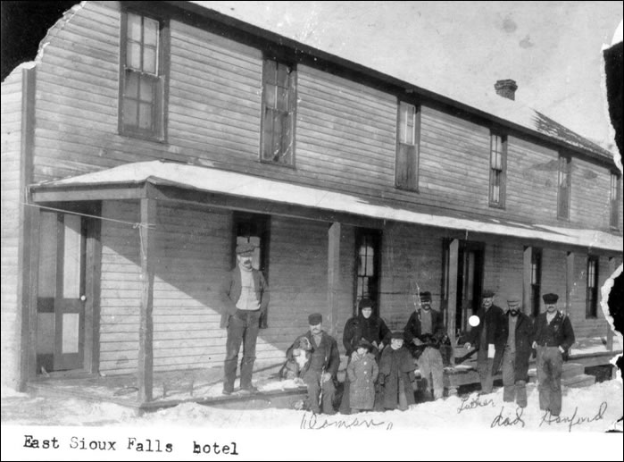It was 1888 that much of East Sioux Falls was built to accommodate the quarry workers and their families. The accompanying photos display several of the buildings that rose from the prairie during this time. By 1890, East Sioux Falls boasted of hotels, boarding houses, stores, post office, saloon and several houses. The railroad bridge across the Big Sioux River can be seen in the background of the town site photo. According to estimates, East Sioux Falls had reached a population of 620 by this time and residents petitioned for a city charter. Voters cast ballots on August 19, 1890 in favor of incorporation.